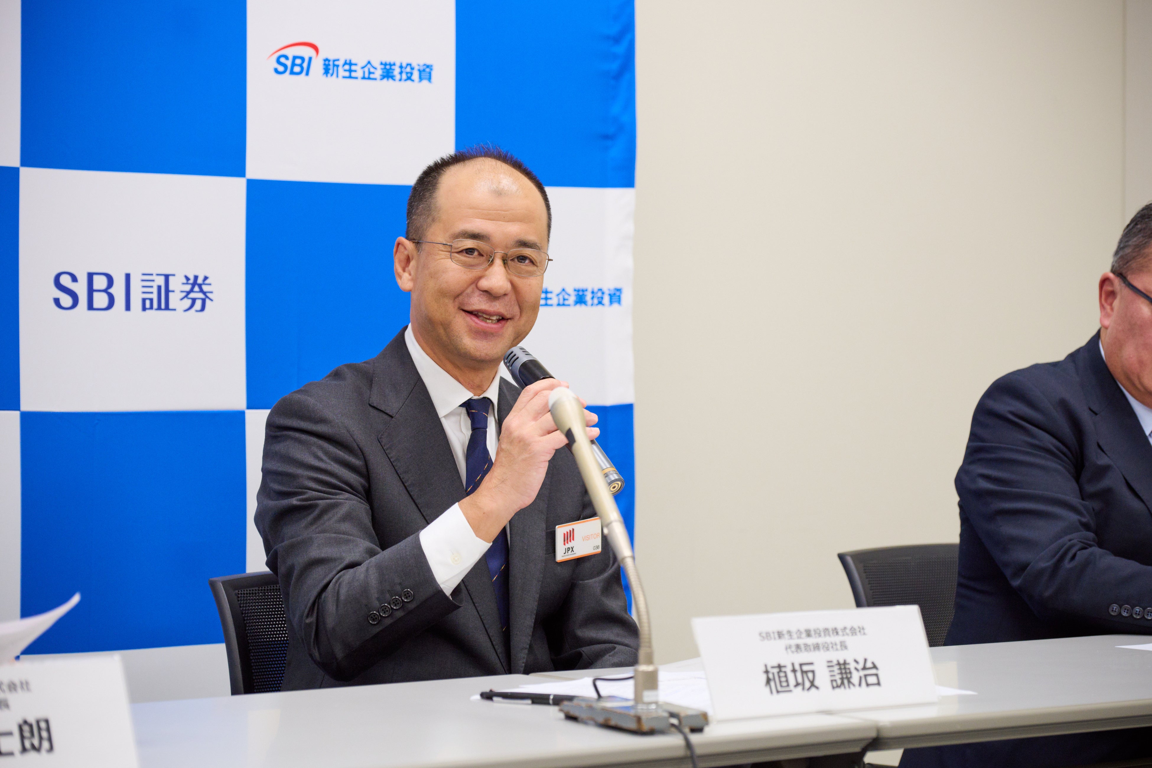 続いてマイクを握ったSBI新生企業投資の植坂謙治社長も、今回のファンドに対する強い期待を語りました。