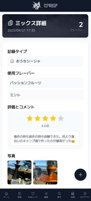 フレーバーミックスを写真・評価・コメント付きで記録