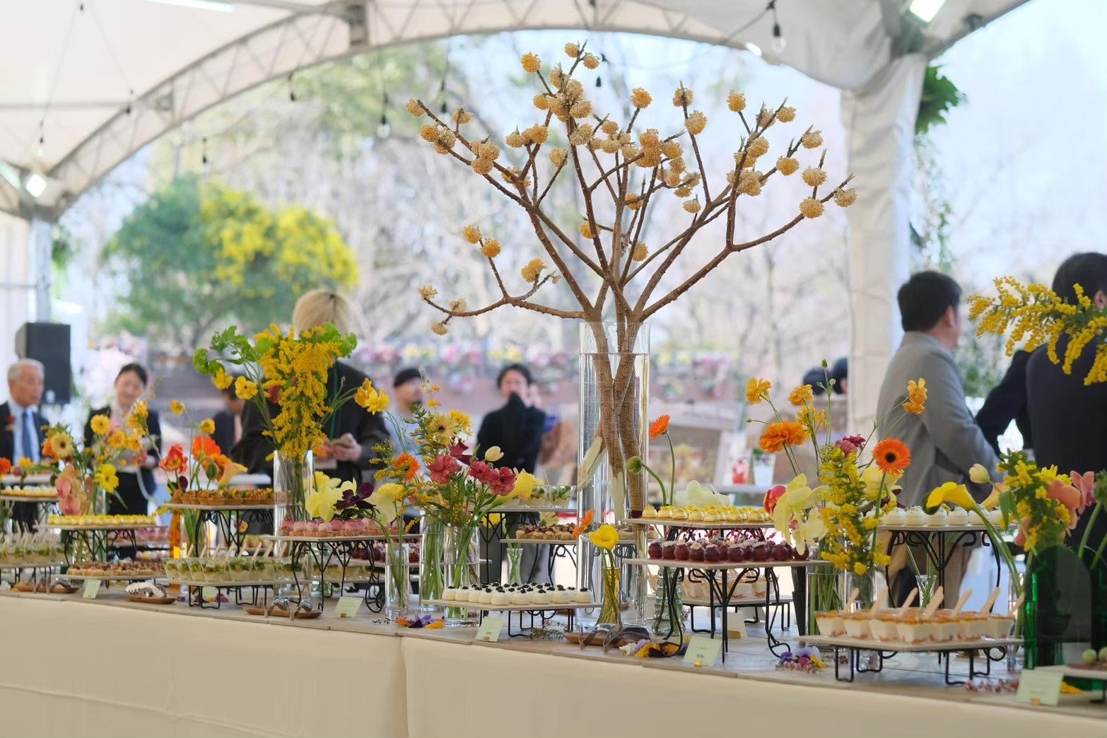 会場サイドで提携レストランのフィンガーフードを回遊式に提供。少量ずつ複数店の味を一度に楽しめます。
