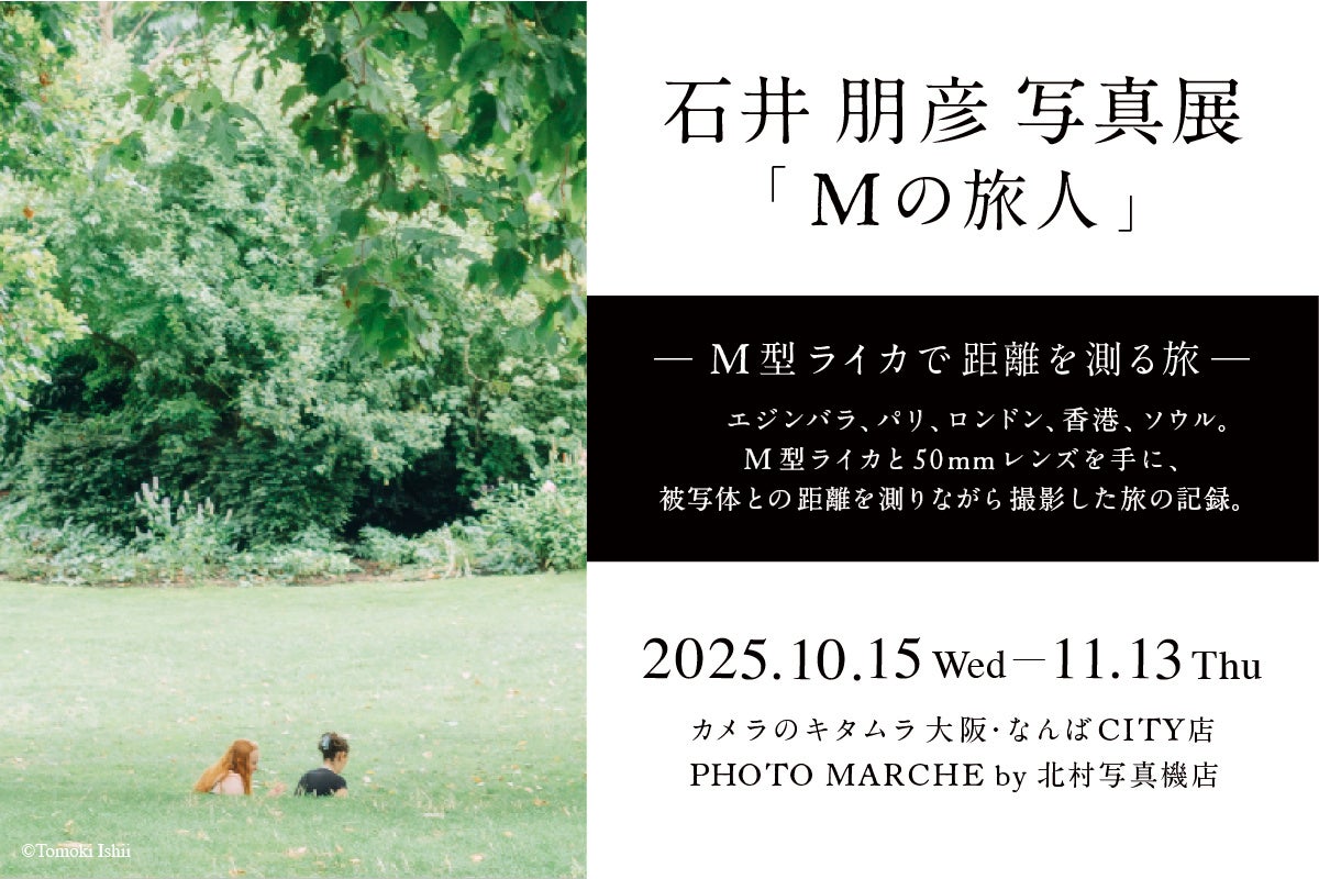 株式会社カメラのキタムラ(本社:東京都新宿区、代表取締役 社長執行役員:山﨑 智彦)が運営するカメラのキタムラ大阪/なんばCITY店(以下、「なんばCITY店」)とPHOTO MARCHE by 北村写真機店(以下、「PHOTO MARCHE」)では、2025年10月15日(水)~2025年11月13日(木)の期間、「石井朋彦写真展『Mの旅人』-M型ライカで距離を測る旅- 大阪展」を開催します。本イベントは2025年7月に新宿 北村写真機店で開催されたイベント(詳しくはコチラ)の巡回展として、上記2店舗で同時開催します。各店ならではの楽しみ方ができるコンテンツを準備して、皆様のご来店をお待ちしております。