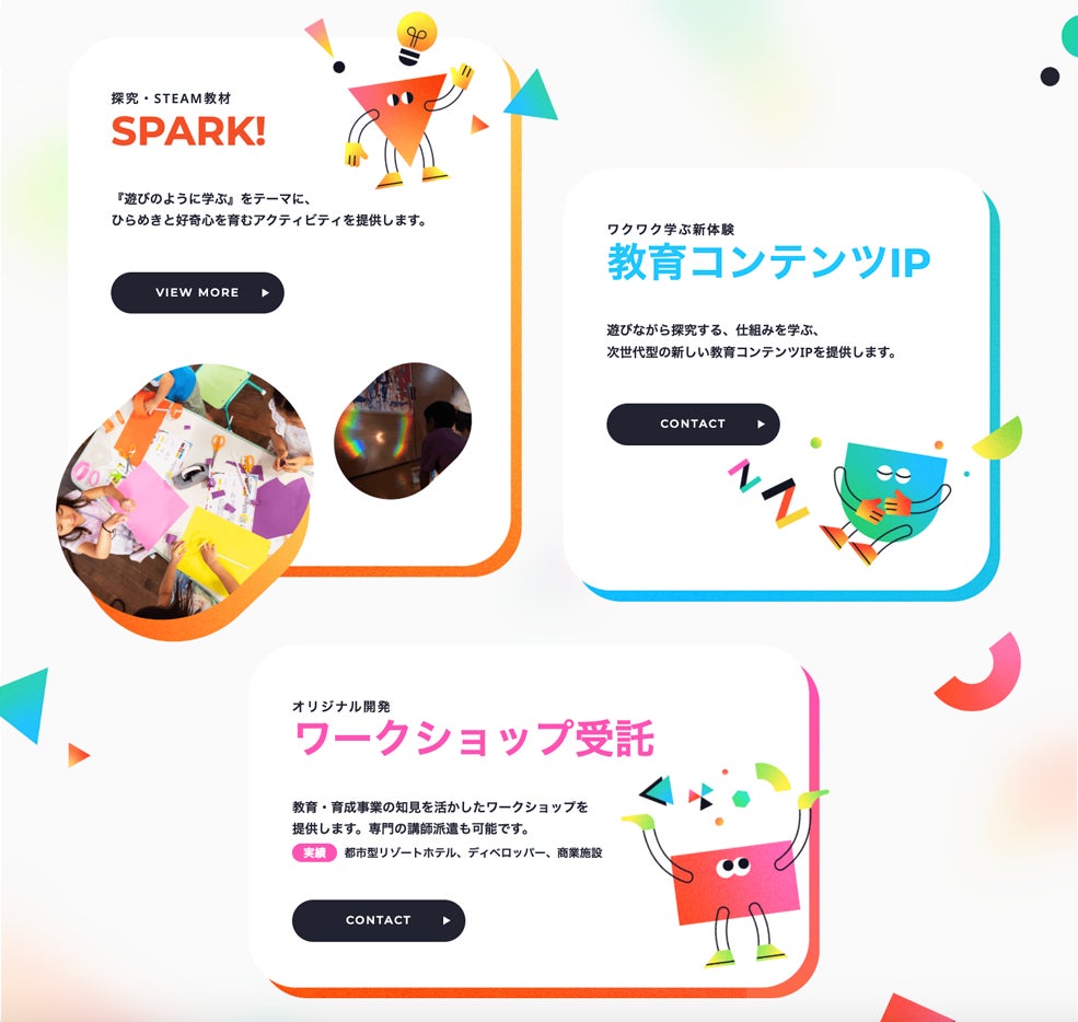 今回公開した公式サイトでは、未就学児から小学生を対象としたSTEAM教材プログラム「SPARK!」の詳細に加え、教育機関・自治体・企業向けの導入事例や活用メニューを紹介しています。