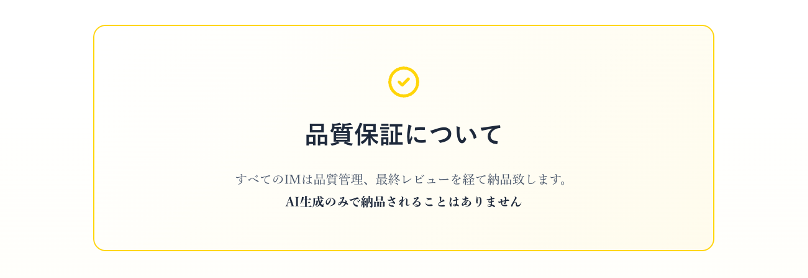 すべてのIMは品質管理・最終レビューを経て納品します。AI生成のみで納品されることはありません。