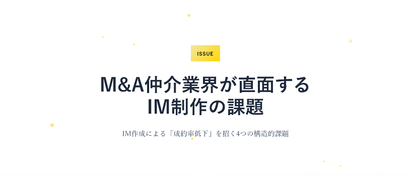 M&A仲介の現場では、優秀な担当者がIM作成という「作業」に時間を取られ、売り手・買い手との対話や成約に向けた動きが後回しになっている場面を多く見てきました。