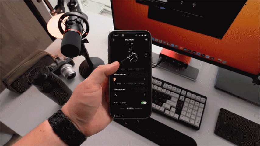パラメータを知らなくても大丈夫!Maono Link アプリを使えば、シーンを選ぶだけで最適なサウンド設定を簡単に適用できます。EQカーブも直感的に調整でき、ワンタップでスタジオクオリティの音質へ。PCがなくても、スマートフォンから音量、EQ、リバーブなどを調整可能。スマートフォンがそのままミキサーとして機能します。