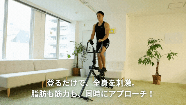 角度を変えるだけで、ウォーキング感覚の有酸素運動から、太もも・お尻を重点的に鍛える高負荷トレーニングまで自在に切り替え可能です。