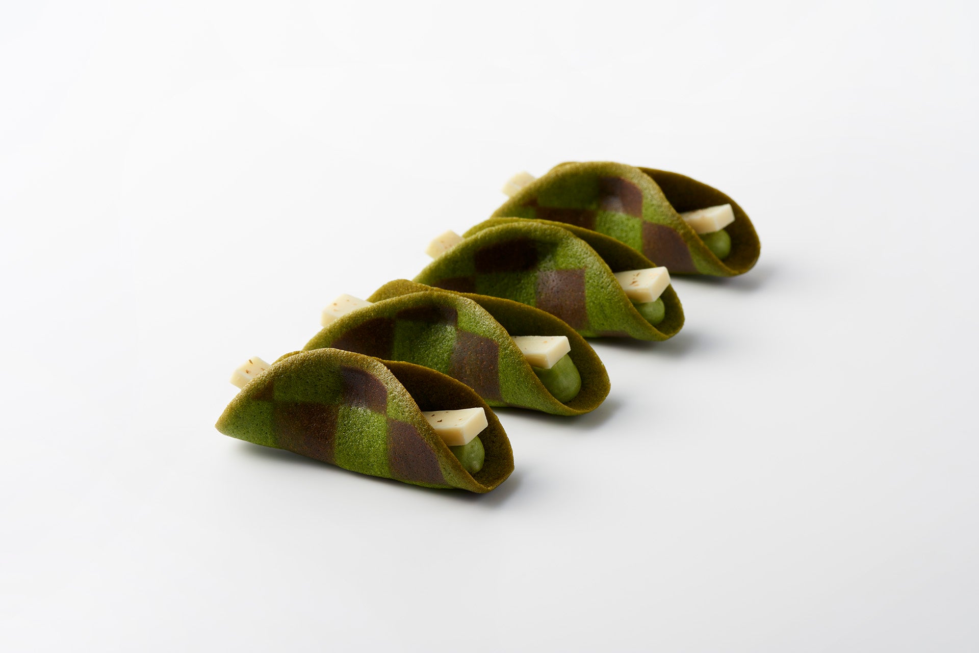 このお菓子の美味しさは食感と香りにあると我々は考えました。抹茶の香りが最大限に花開く温度を見極め、たどり着いた温度は150度でした。低温でゆっくりと香りを閉じ込めます。