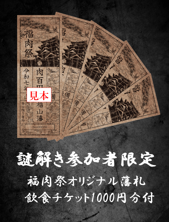 福山城謎解き参加チケット2,500円 (福肉祭飲食チケット1,000円分付き) |