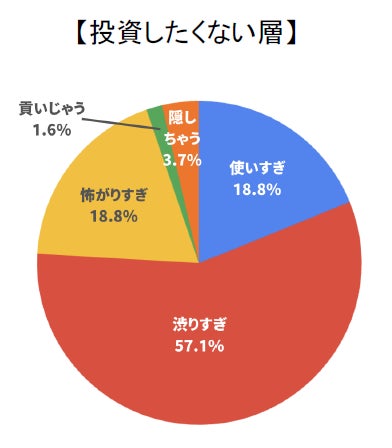 「投資はしたくない」と答えた人は全体の38.8%にのぼりました。そのうち「怖がりすぎ」タイプが18.8%、「渋りすぎ」タイプが57.1%と、心理的な慎重さや恐怖心が顕著です。