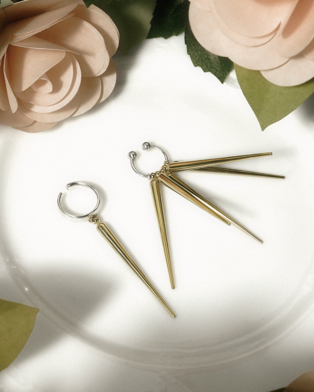 スタッズイヤーカフ(真鍮、コーティング、シルバー925)¥12,100、スタッズイヤーカフ(真鍮、コーティング、シルバー925)¥17,600 すべて税込