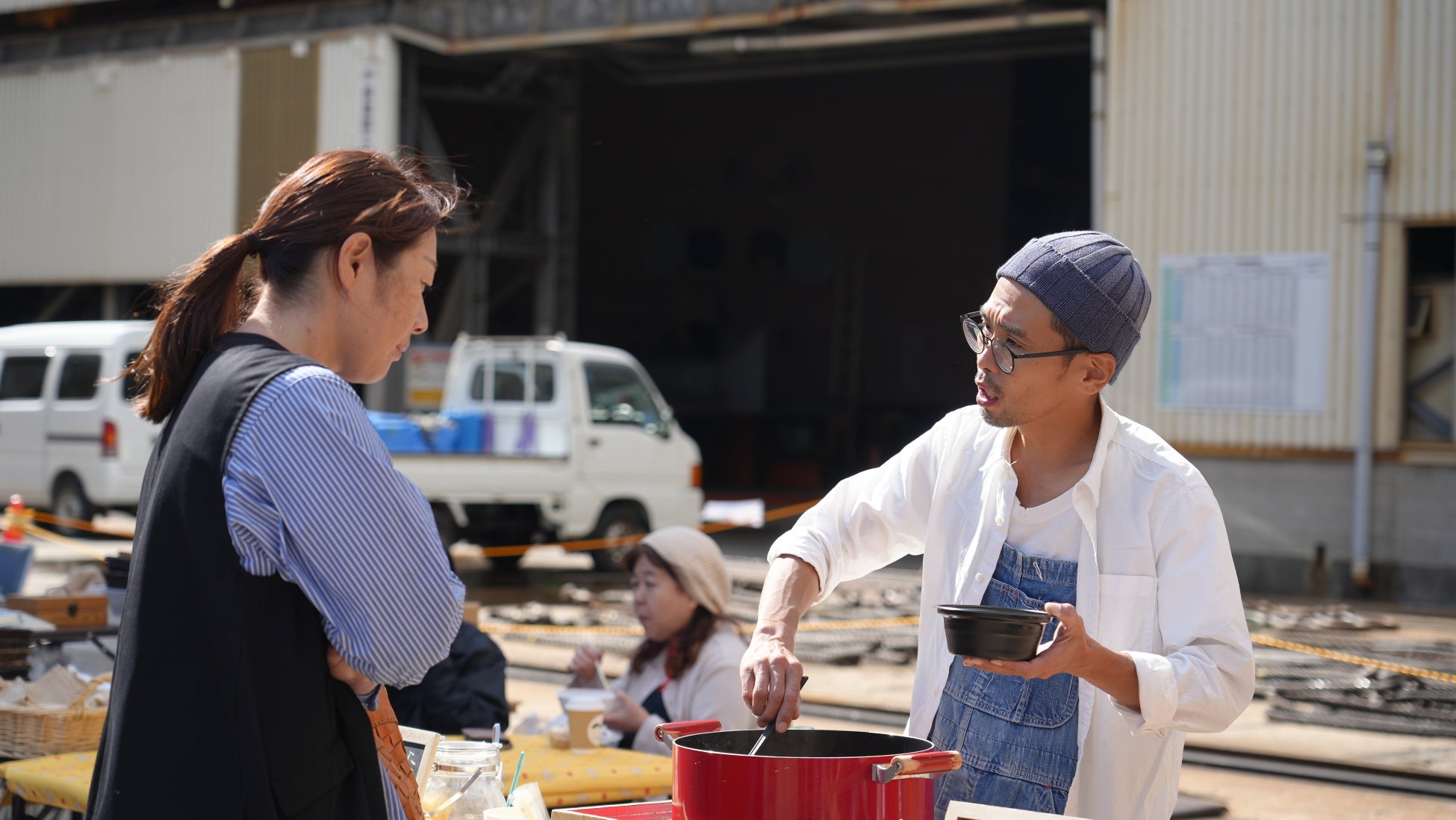 ③工場マルシェ:巨大クレーンの下で、飲食や物販を楽しめるマルシェを開催。家族連れでも楽しめる空間です。