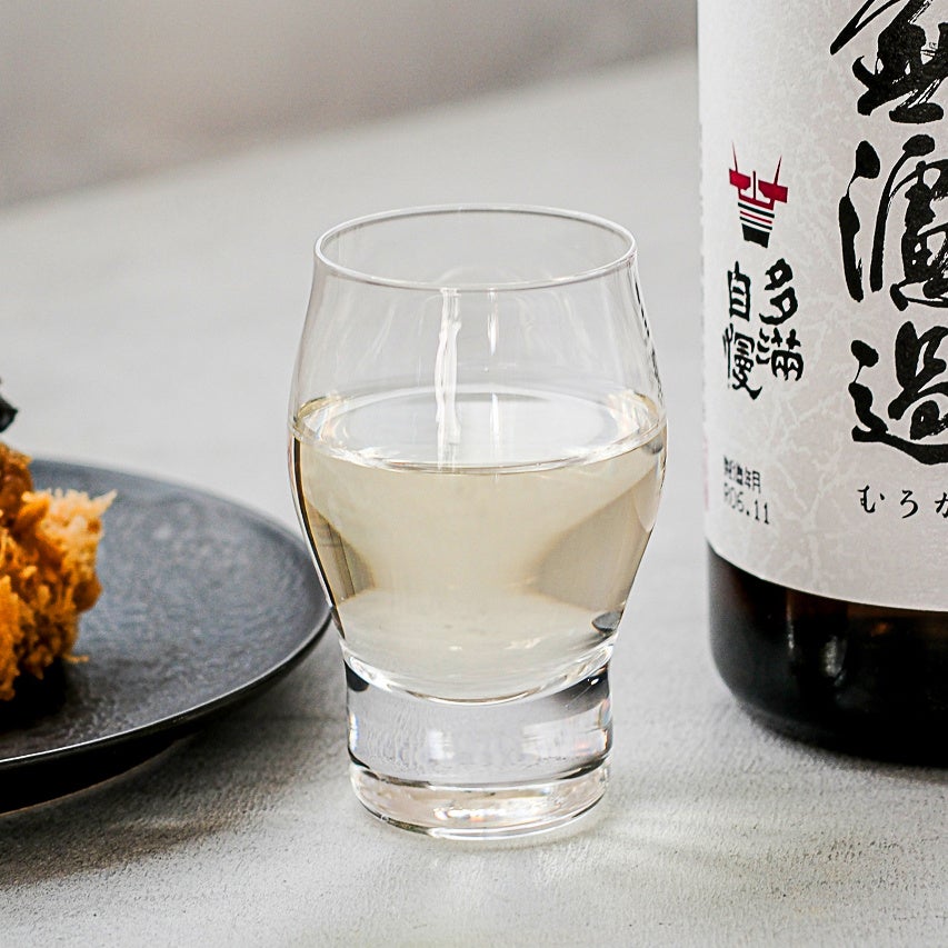 独特のふっくらとしたフォルムのグラスにふさわしいのは、やはりふくよかな味わいの古酒や原酒です。手にしっとりと馴染むグラスに日本酒を注いだら、発酵系や燻製系の食事と合わせてみてください。静かに日本酒を楽しみたい、そんな大人向けのグラスです。
