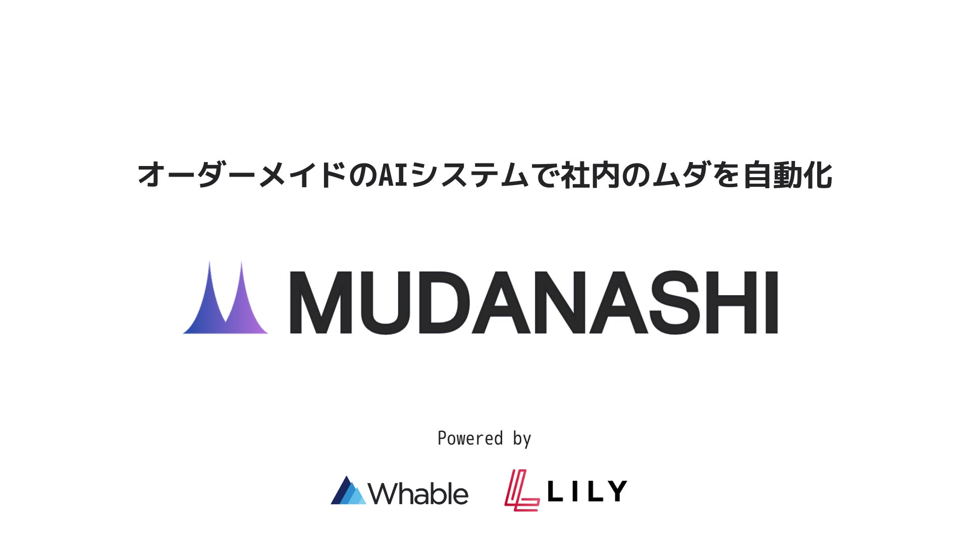 生産性向上コンサルティング事業を展開する株式会社Whable(読み:ウェイブル、本社:東京都渋谷区、代表取締役:金濱 壮史)は、システム開発の株式会社リリー(本社:東京都中央区、代表取締役:香取 佑亮)と共同で、AIシステムにより業務の自動化・効率化を実現する新サービス「MUDANASHI(ムダナシ)」の提供を本日より開始しました。
