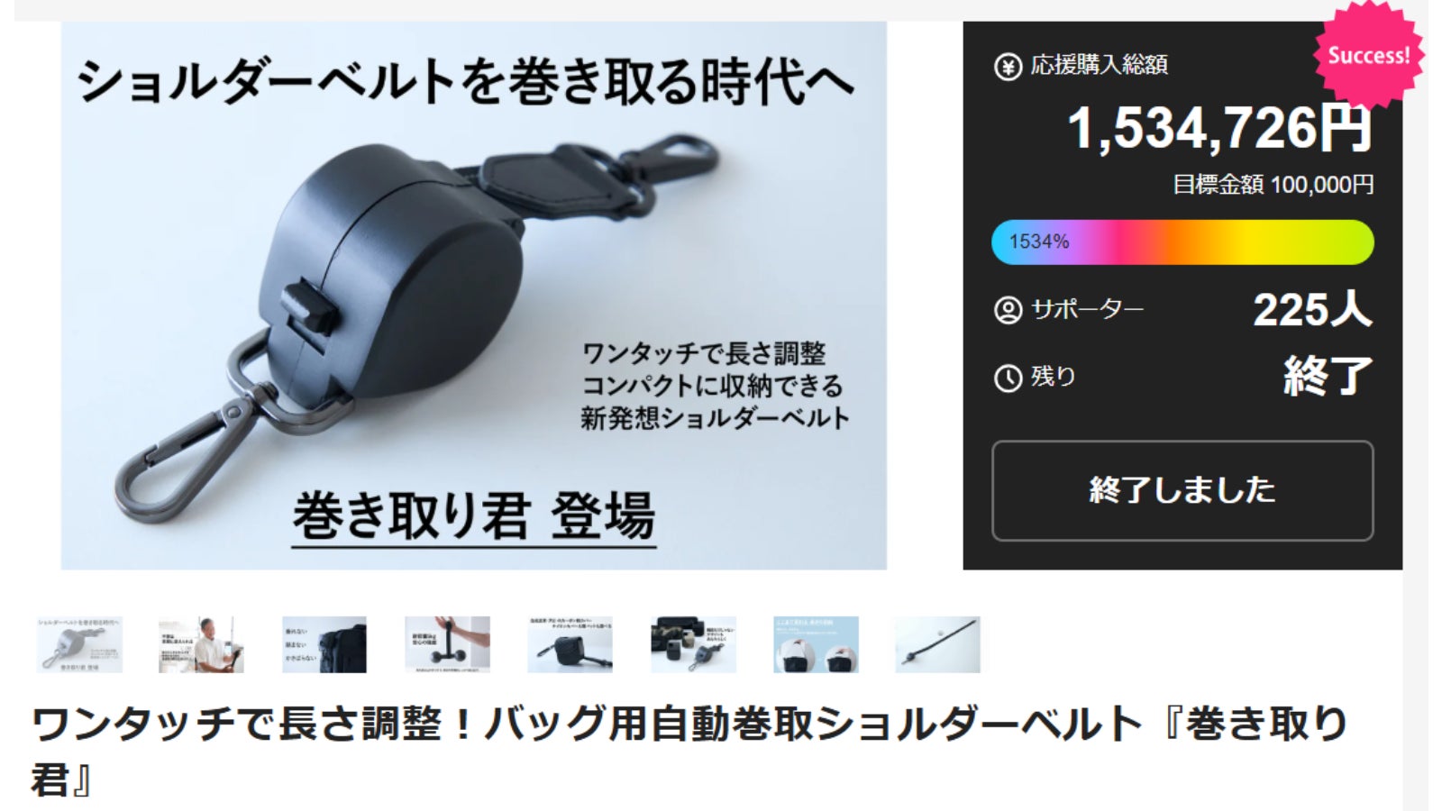 クラウドファンディング開始18時間で完売。自動巻取りショルダーベルト『巻き取り君』、最終支援総額1,534,726円でプロジェクト終了