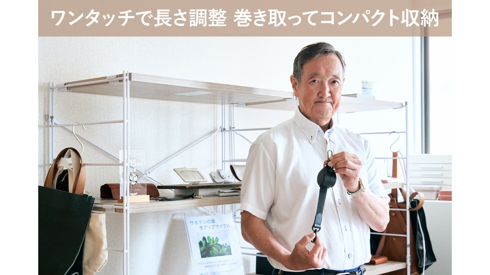 自動巻取りで“垂れない”。片手で長さが瞬時に決まる、新発想のショルダーベルト。