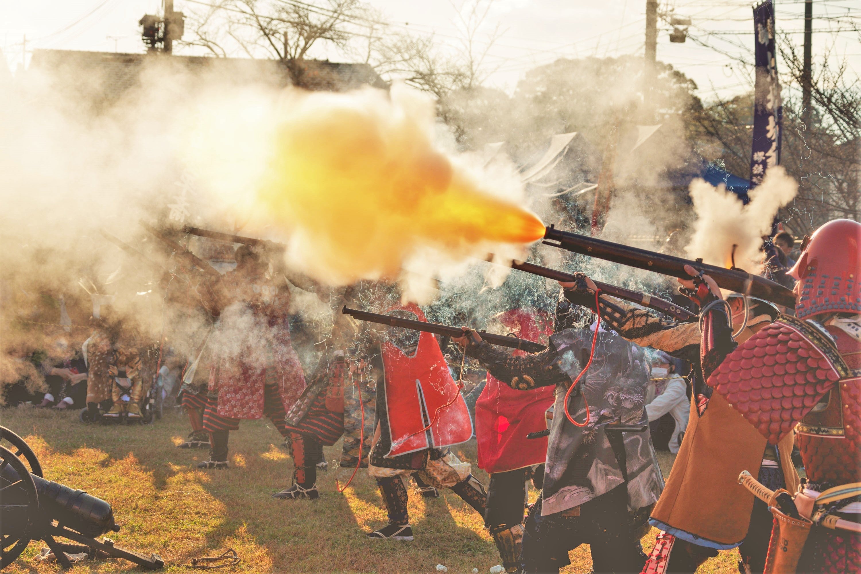火縄銃が轟く!城下町筋を甲冑隊が練り歩く!
