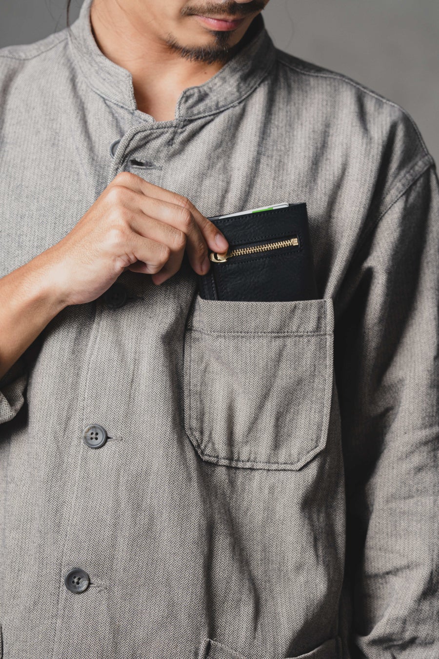 「ポケットが膨らまない財布」を目指し、設計から縫製まで一切の無駄を排除。