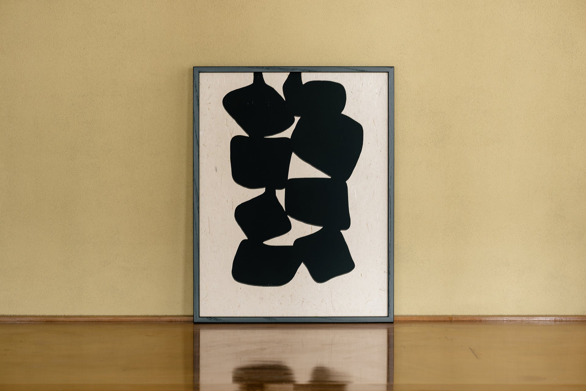 ファブリックパネルや木版画を中心に制作するアートライン。モノトーンを基調に、大胆さと繊細さが共存する世界観を表現しています。