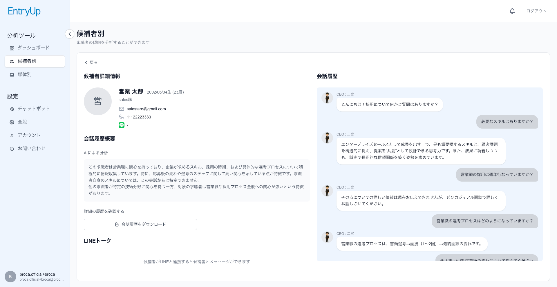 EntryUpは、AIチャットボットを通じて企業の魅力を最大限伝え、潜在候補者の取りこぼしを防ぎながら採用効率化を実現します。