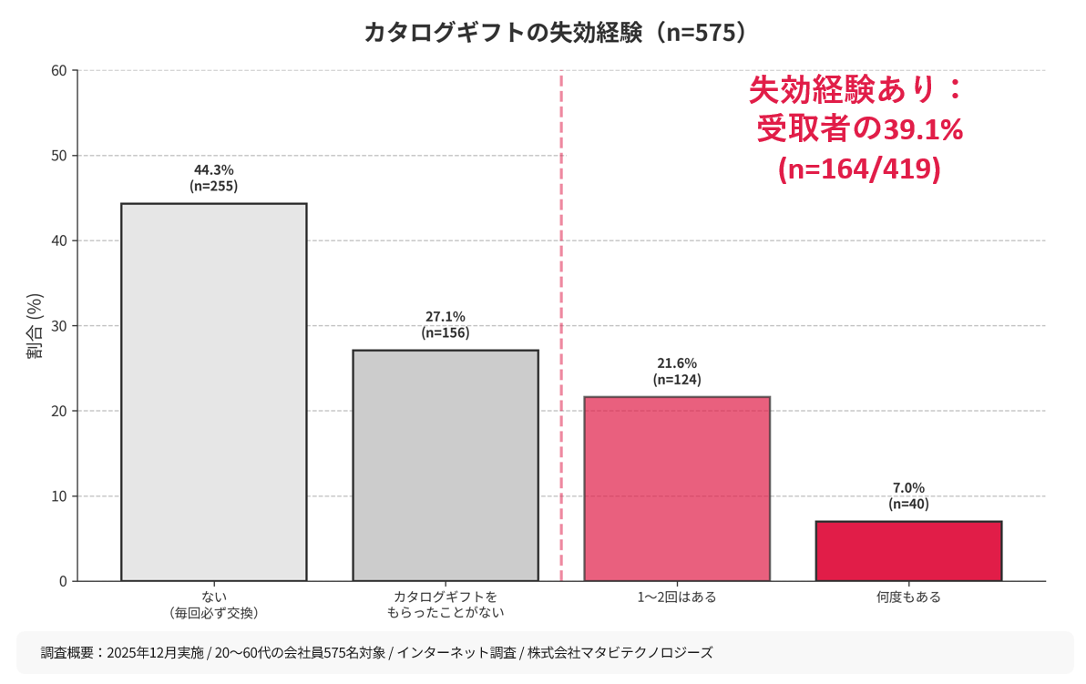 カタログギフトの失効経験:全体の39.1%が経験あり