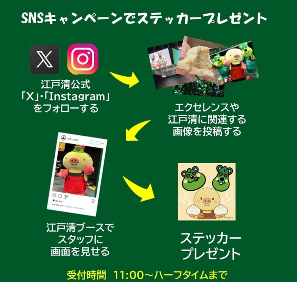 試合当日、江戸清公式SNS(X・Instagram・Facebook)をフォローして、エクセレンスや江戸清に関する画像付き投稿をしてくれた方に特製ステッカーをプレゼント。