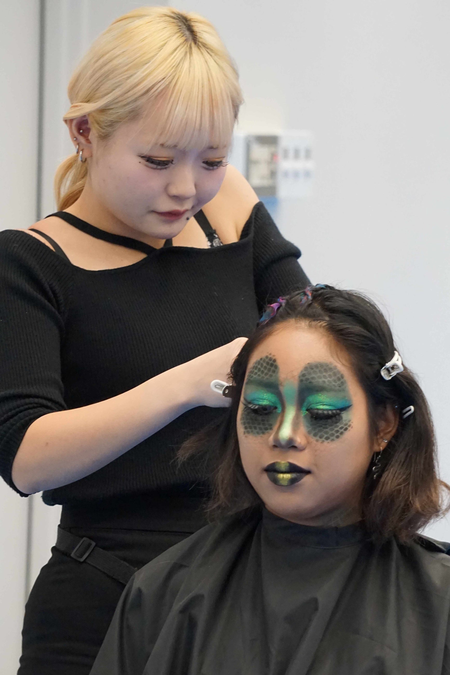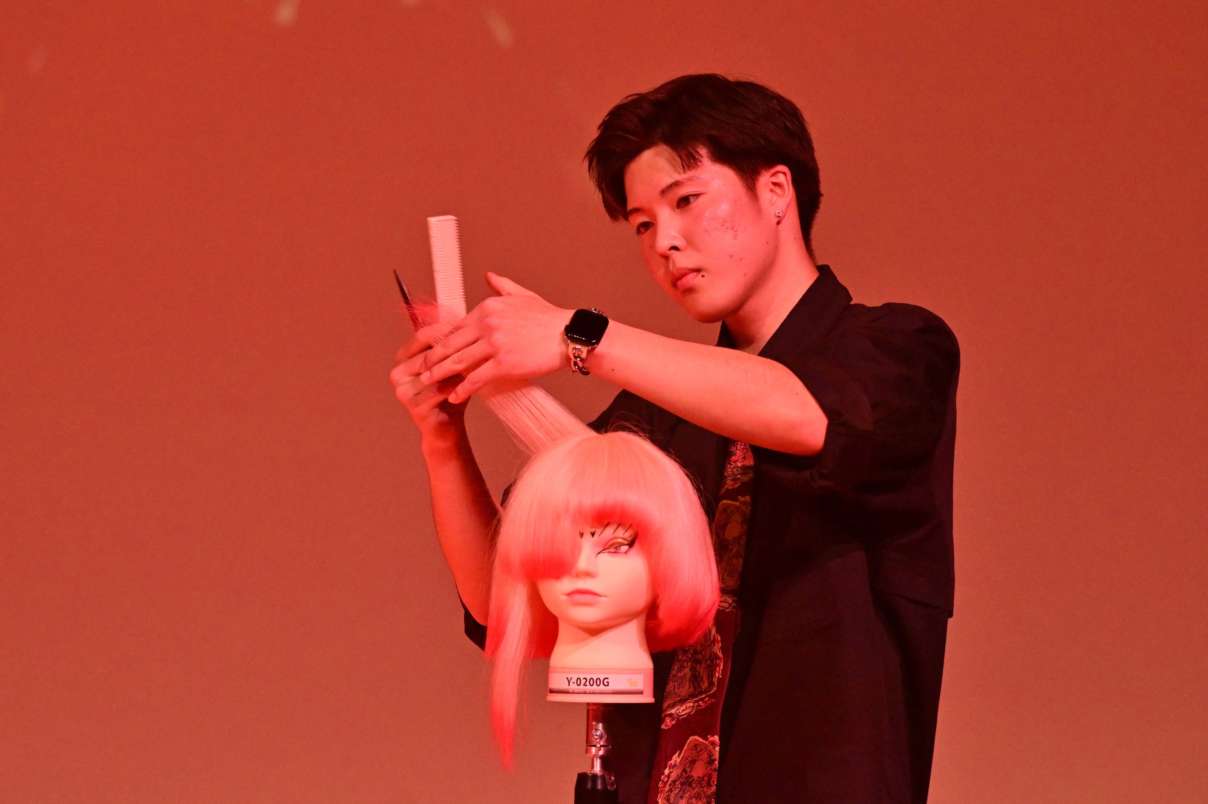 2年生は、ヘア・メイク・ネイル・衣装までを総合的にプロデュースするCreative Competitionに臨み、60分間でヘアデザインを仕上げる1次審査と、ステージでのウォーキングによる2次審査を経てグランプリが決定しました。