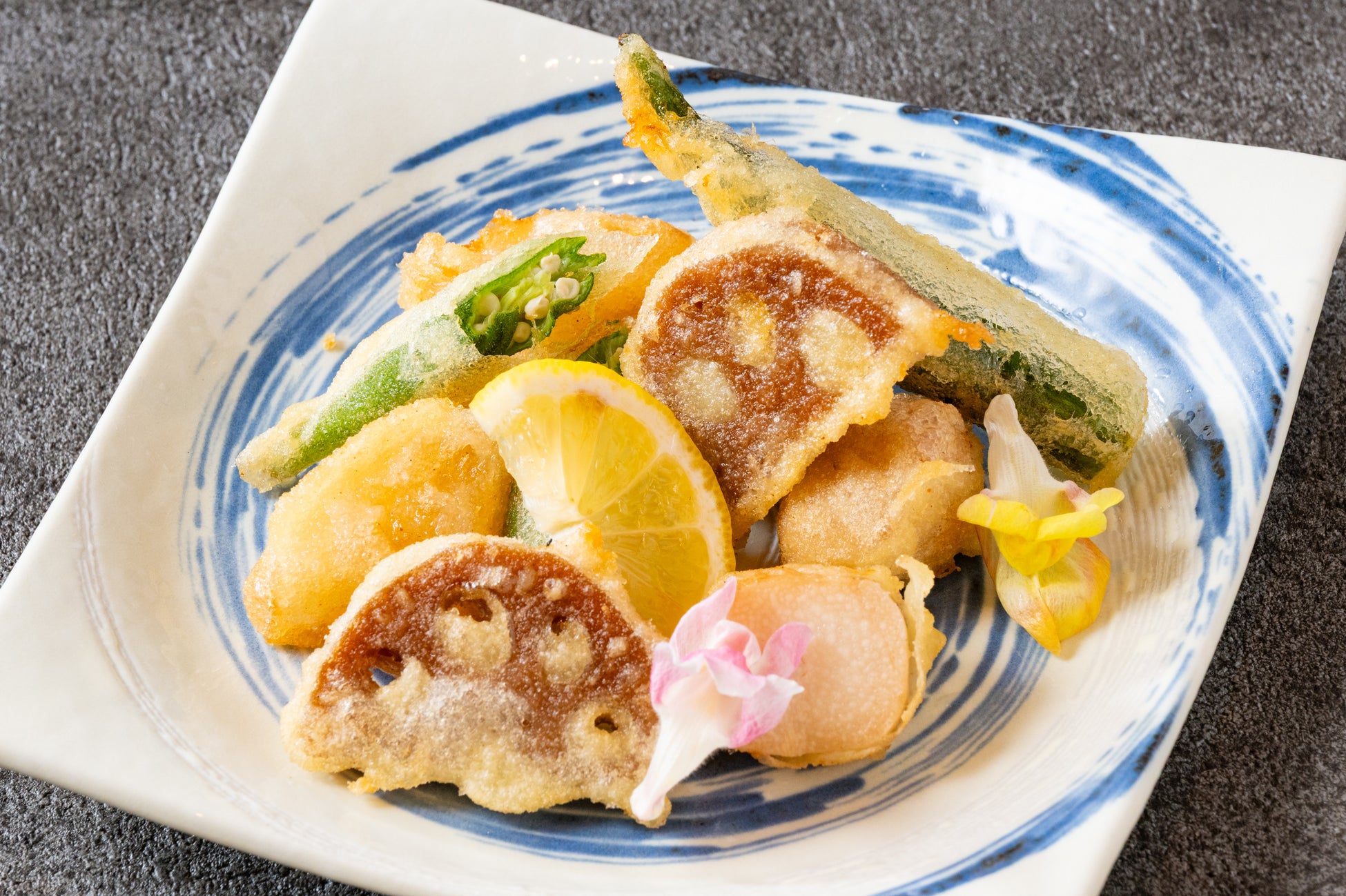 天つゆ要らずの出汁天ぷら:出汁が染みた衣が日本酒を引き立てる