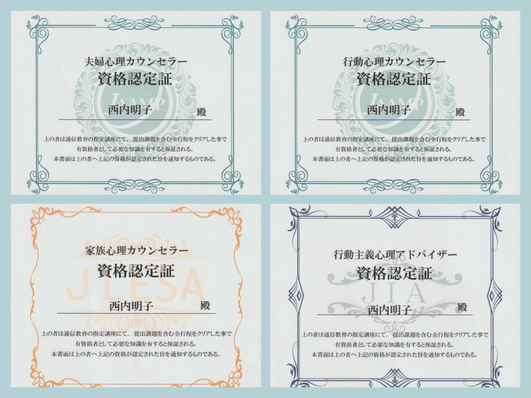 「夫婦・家族心理カウンセラー」資格取得で「永続的な幸福(エターナル・ハピネス)の設計」**を宣言。