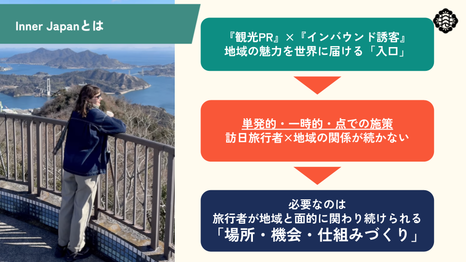 Inner Japanはこの循環を愛媛にとどまらず瀬戸内全体へ広げ、プロジェクトの持続と拡張を通じて、訪日旅行者と地域が共創するプロジェクトを生み出していきます。