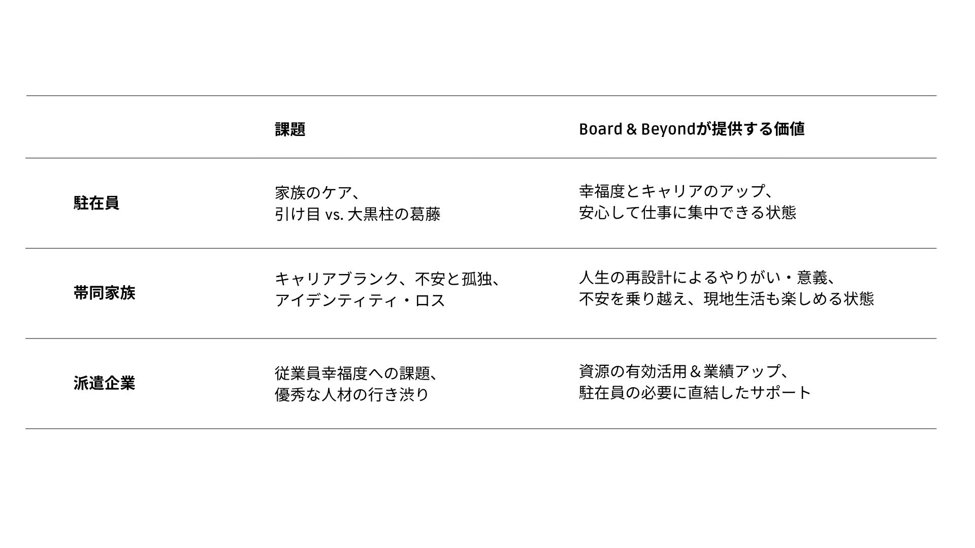 駐在員・家族・企業のWin-Win-Winを叶え、駐在期間を3者全員にとってのステージアップ期間にすること