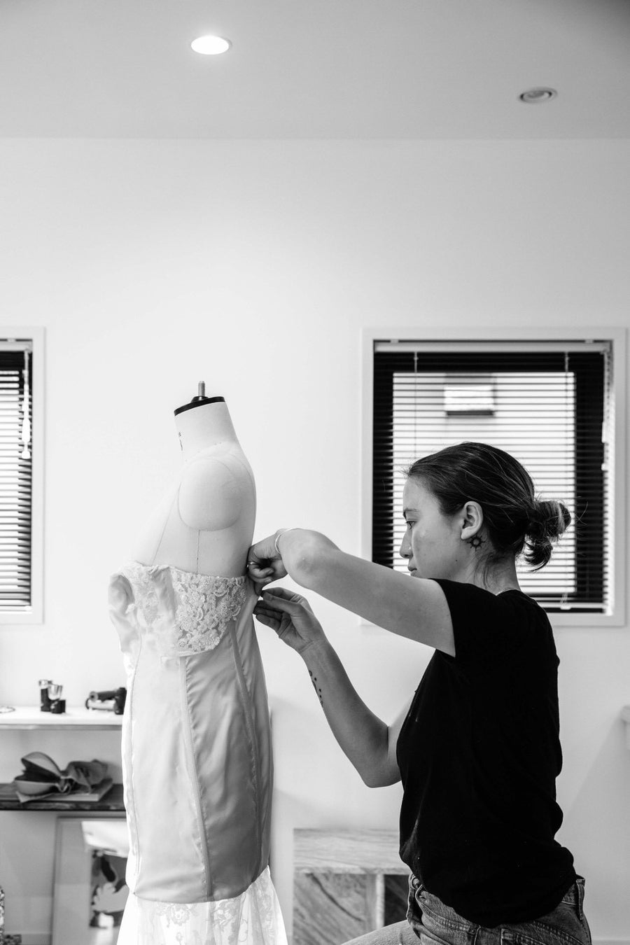 2022年には鎌倉にアトリエを構え、自身のブランドを立ち上げる。幼少期より多文化に触れ培ってきた感性を活かした独特で自由な表現と、細部にまでこだわる職人気質な技術力を駆使した唯一無二のオートクチュールドレスを製作しております。