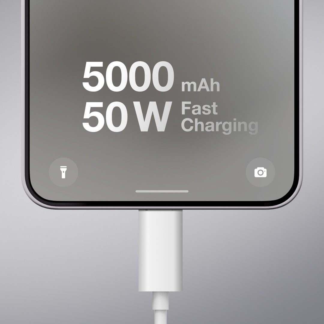 さらに、Snapdragon® 7s Gen 3の省電力設計と5000mAhの大容量バッテリーにより、AI機能を使用してもバッテリー残量を気にすることなく、Natural AI Phoneをご使用いただけます。50Wの急速充電にも対応しており、充電0%の状態から75分※5で満充電が可能です。
