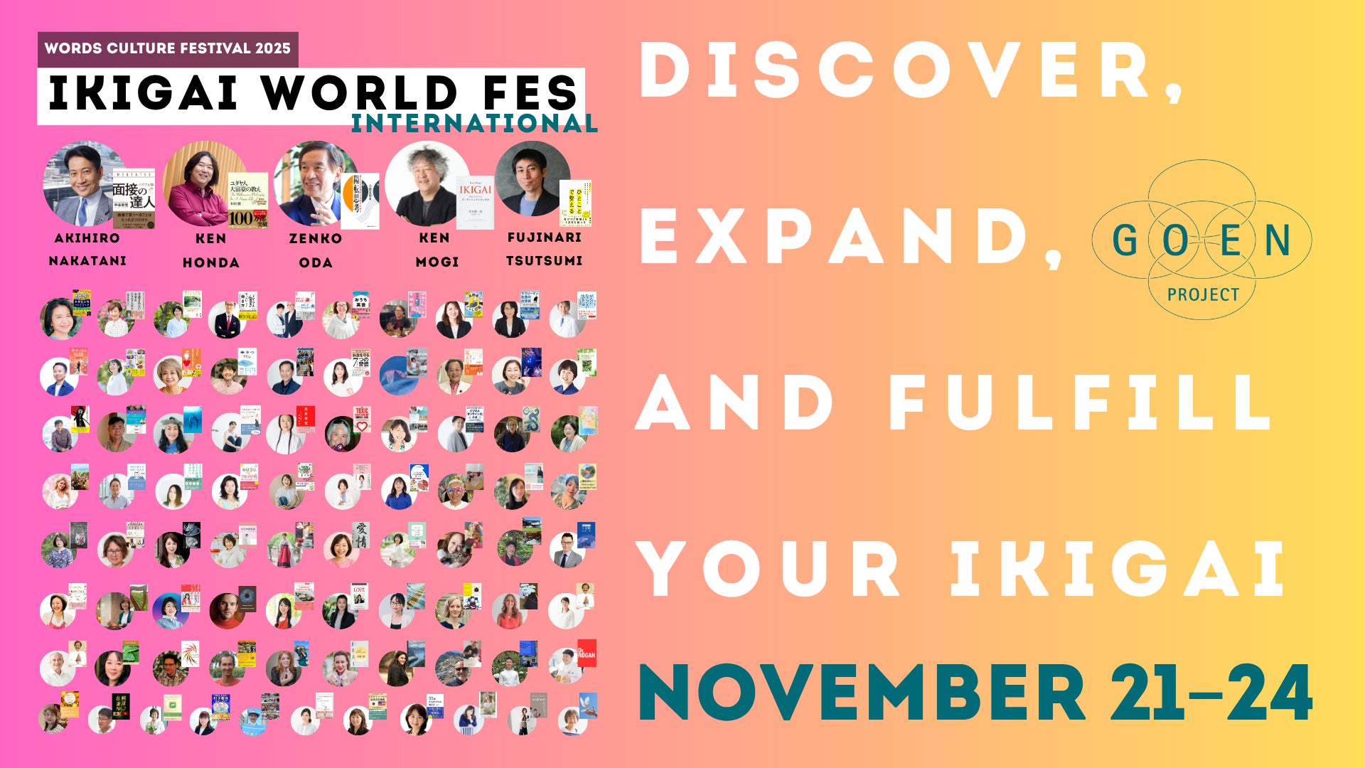 IKIGAI WORLD FESは、「GOENプロジェクト」の一環として開催されています。GOENプロジェクトは、日本の「ご縁」という概念を世界に広げ、グローバルなコミュニティを通じて意義ある繋がりを生み出すことを目指しています。