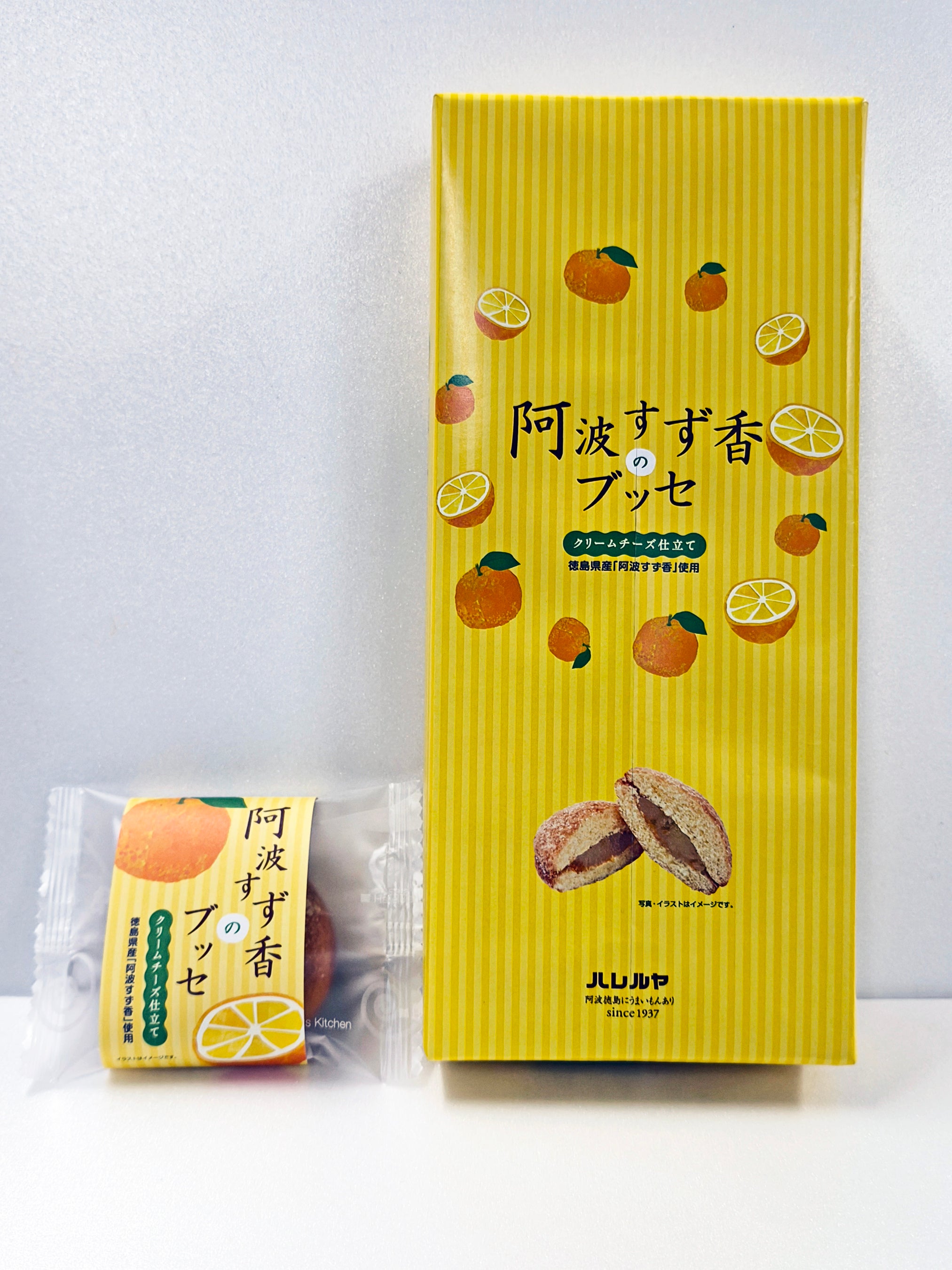 模擬会社徳島農大そらそうじゃ(徳島県名西郡石井町、徳島県立農林水産総合技術支援センター農業大学校内 以下、徳島農大そらそうじゃ)は、生産者と連携し、県が育成した香酸柑橘「阿波すず香」をPRするために、地元菓子メーカーである㈱ハレルヤと『阿波すず香のブッセ』を商品開発しました。