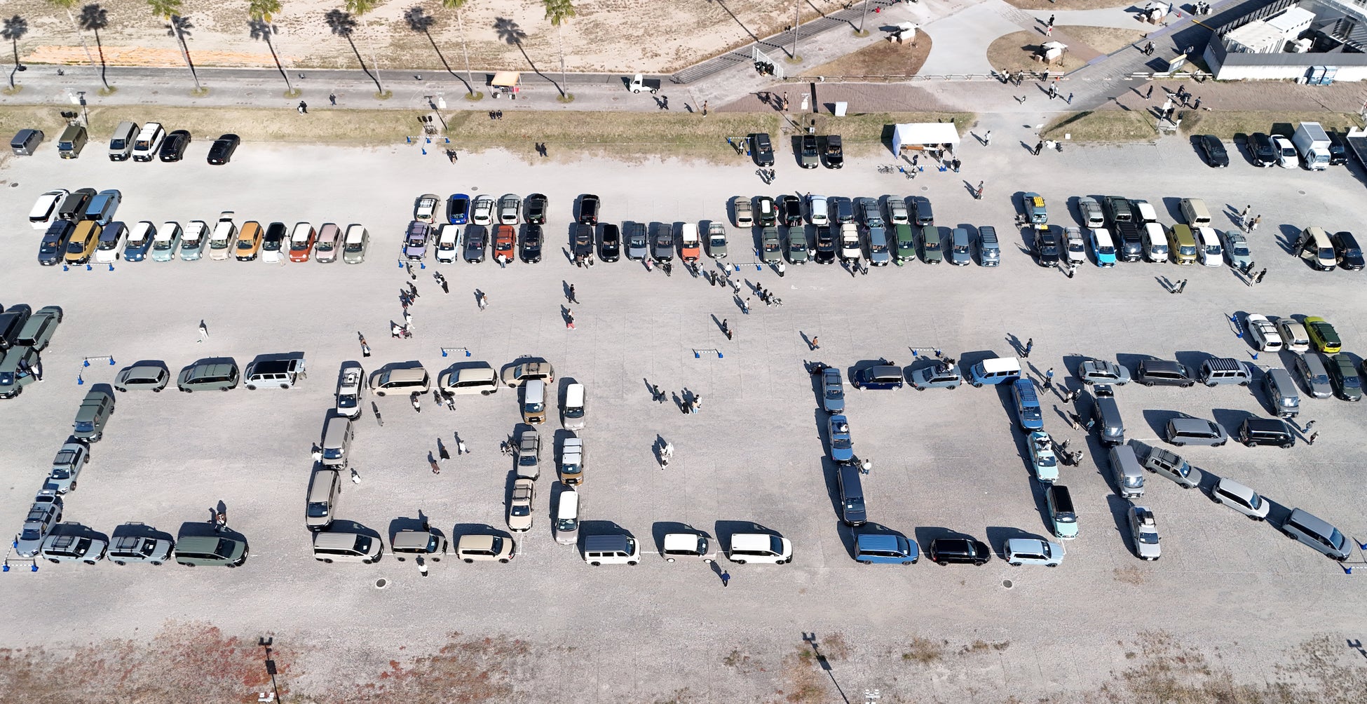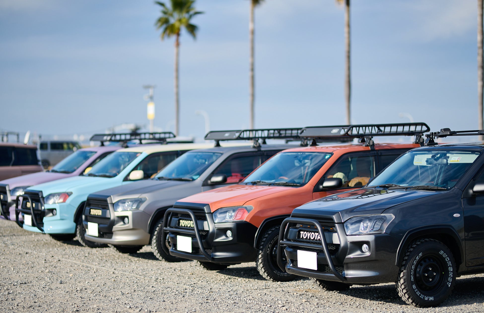 当日は各地から約200台のオーナーが集まり、十人十色のカスタムカーが海沿いの会場を鮮やかに彩りました。ドローンによる空撮、オーナー同士の交流、トークショーや抽選会など、盛りだくさん。会場では、オーナー車両の展示に加え、人気のキッチンカーやフリーマーケット、カスタムカーパーツの展示・販売、塗装体験、大人から子供までが楽しめる内容で、会場は熱気に包まれました。