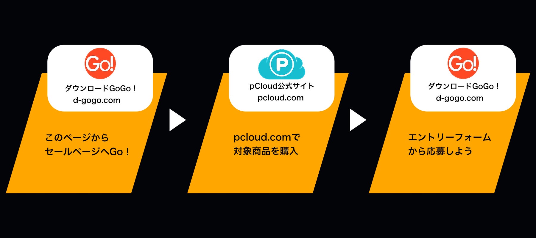 キャンペーン期間中にダウンロードGoGo!特設ページからpCloud販売サイトにアクセスし、対象の買い切りプランを購入、有効エントリーいただいた方全員に、購入容量に応じたAmazonギフトカードを進呈します。