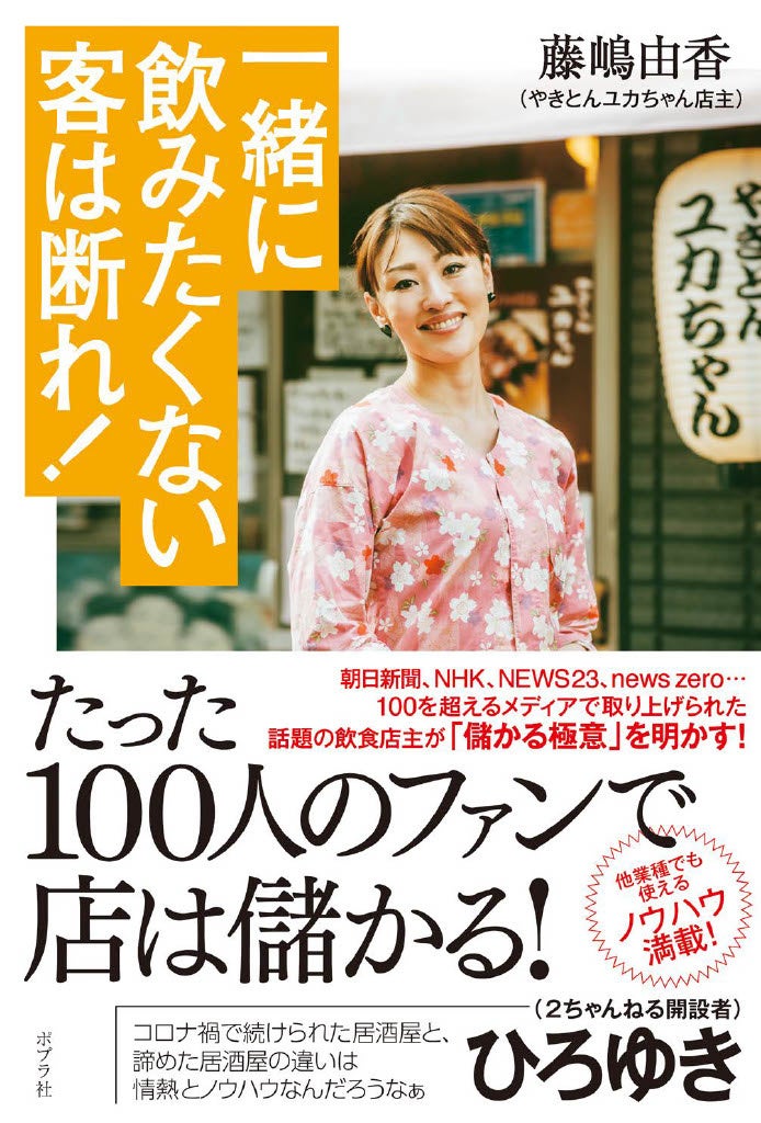 「やきとんユカちゃん」およびふじ嶋グループは、飲食店がコロナ禍の苦境に立たされても決して諦めず、その最前線で女将・藤嶋由香(ユカちゃん)が現場の声をストレートに発信し続けました。 この姿勢は数多くのニュース番組やメディアで取り上げられ、その歯に衣着せぬ物言いと業界への熱い想いは反響を呼び、「2ちゃんねる」開設者・ひろゆき氏が帯コメントを寄せた自身の著書『一緒に飲みたくない客は断れ!』(ポプラ社)の出版にも繋がりました。