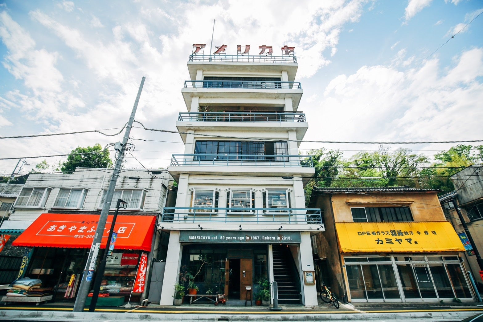 見学した物件は多種多様で、駅徒歩1分の広い空き店舗、昨年惜しまれつつ閉店した元豆腐屋、築70年の長屋を再生した「アメリカヤ横丁」、レトロな鉄窓が残る「マルハクビル」、元歯医者、元アパレル店、映画のロケ地としても使われた元文具店など、用途の異なる建物が連続します。