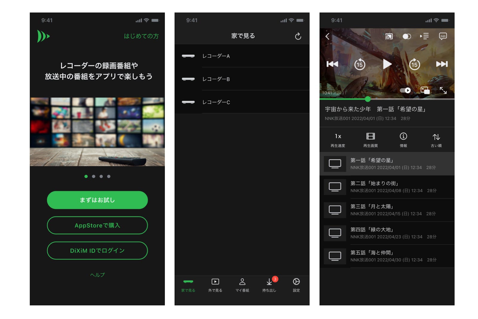 「DiXiM Play」は、ご家庭のネットワーク(Wi-Fi)を経由して、レコーダーに保存されている録画番組や放送中の番組を、スマートフォンやタブレット、パソコンで視聴できるDTCP-IP対応のネットワークプレーヤーアプリケーションです。