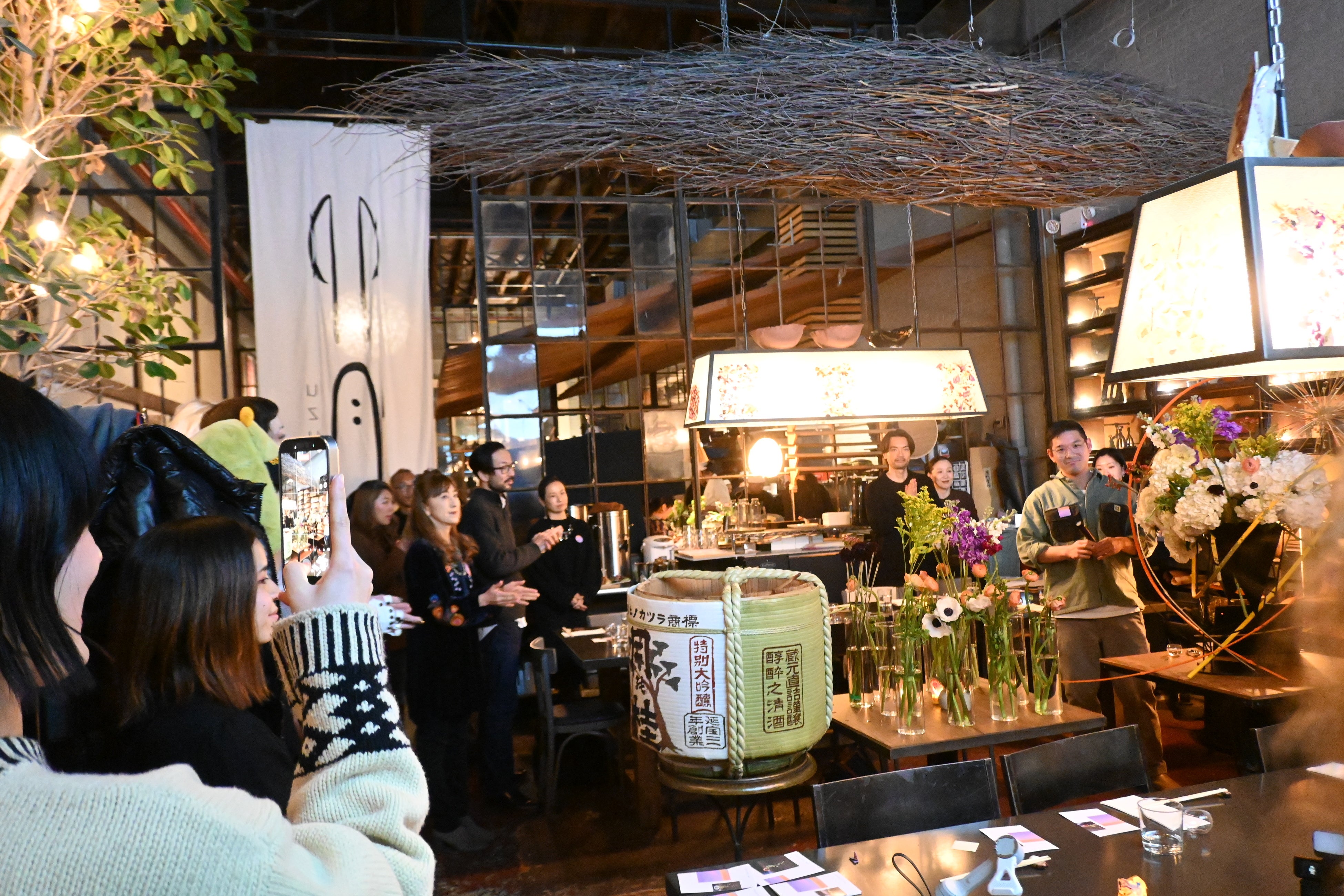 The evening also introduced a new expression of Japanese culture by pairing Ikebana with seasonal sake tastings and handmade soba prepared by Shuichi Kotani, Owner of UZUKI.