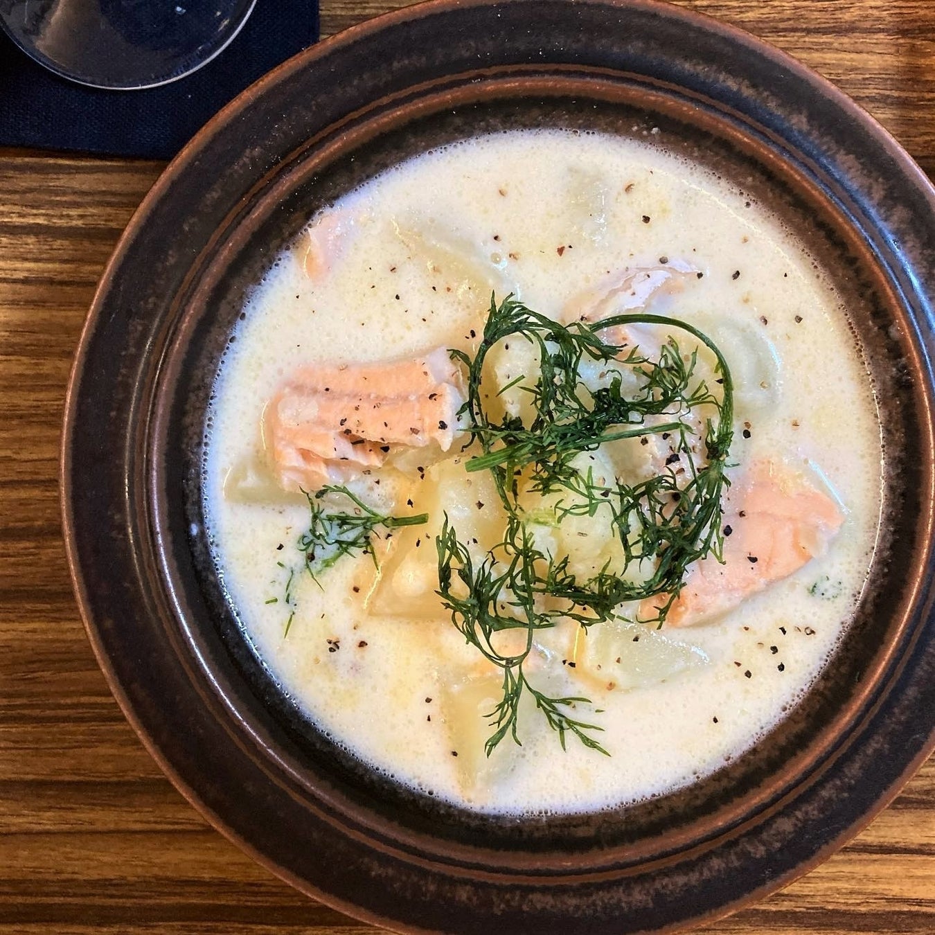 フィンランドの定番のサーモンスープや、寒い季節にはぴったりのきのこのストロガノフのほか、いちご、チョコホイップ、マスカルポーネクリームを包んだクレープ、白ワインを使ったホットワイン、ビーフシチューなど、温かい料理などを多数ご用意しております。