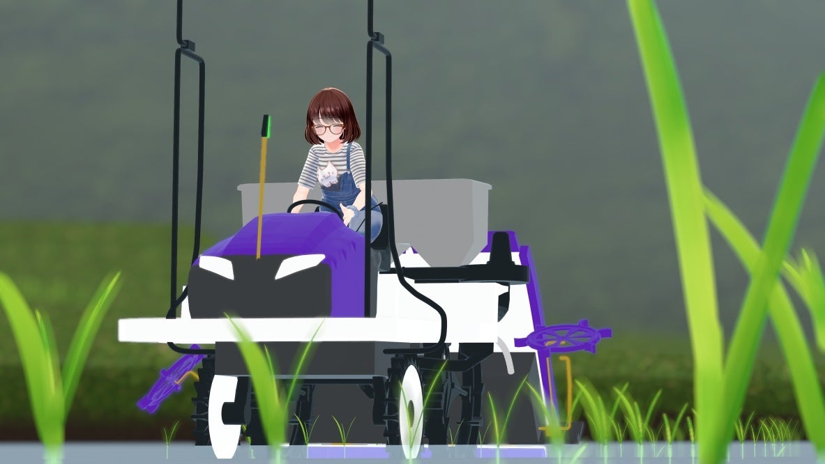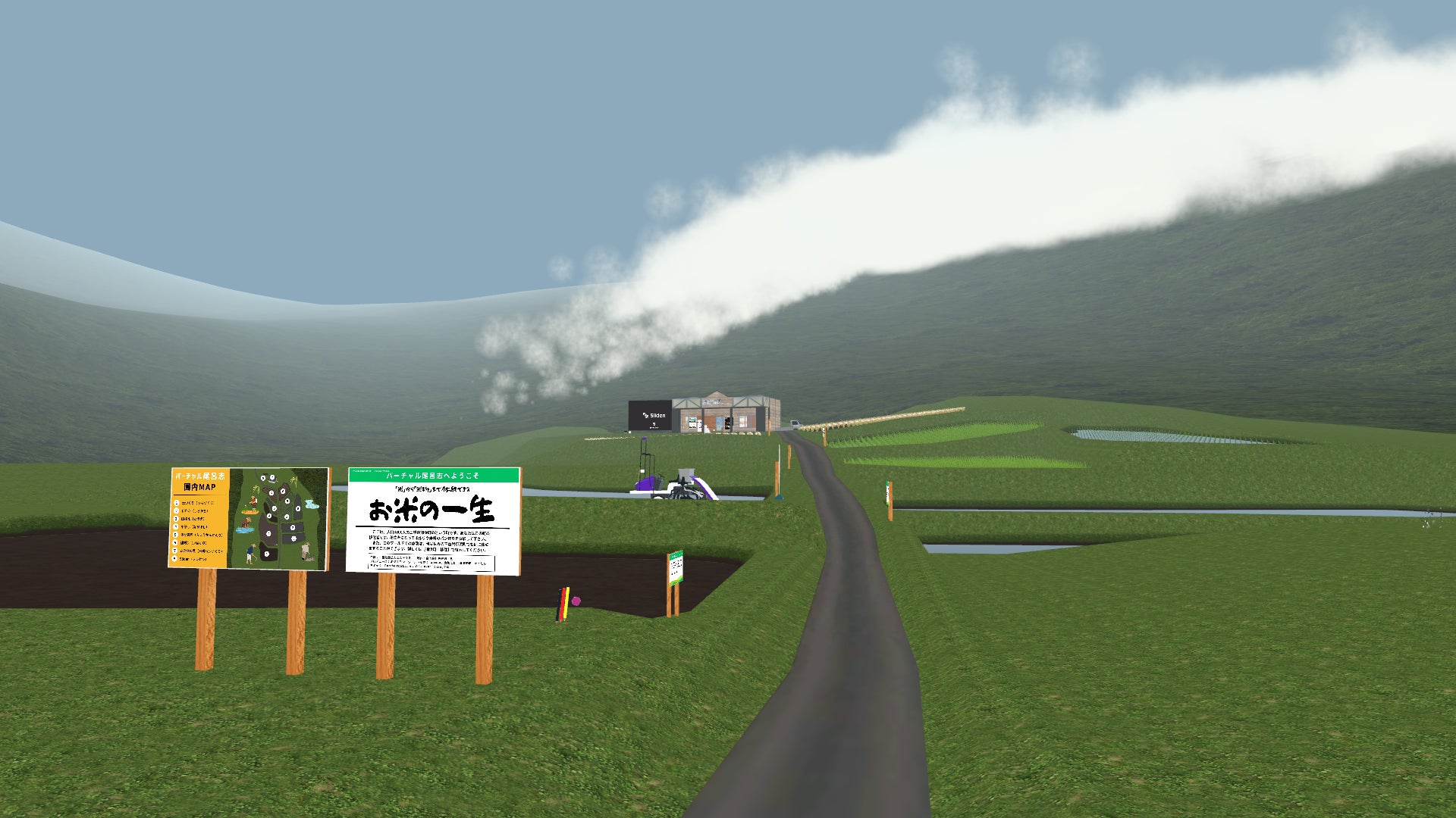 米農家の協力の元、コントローラー操作で田植え機に乗り、実際の稲作を擬似体験。また、実際の田んぼの水の音や田植え機の音を収録し、VRゴーグルで体験すると視覚と聴覚で田んぼを体験できます。
