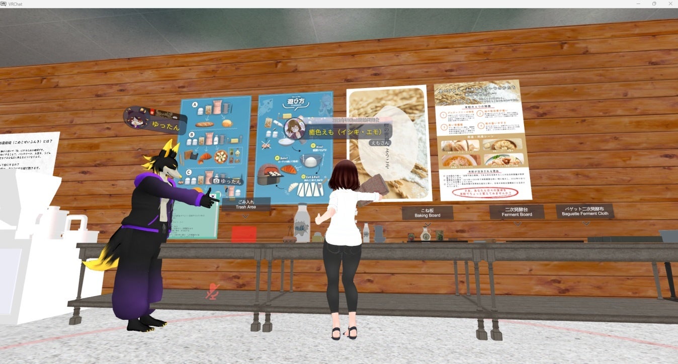 収穫した米を製粉し、パンに加工するまでの工程をバーチャル化。「米が粉になる」過程を視覚的に学習できます。ワールド内では実際に材料を混ぜて焼くと米粉パンが出来るゲームを搭載しています