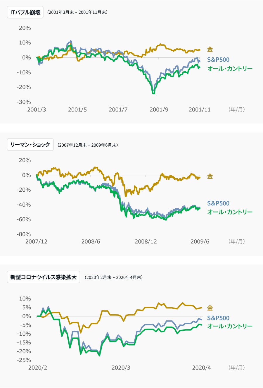 ポイント③ 景気後退時に示された、金がもたらす分散効果