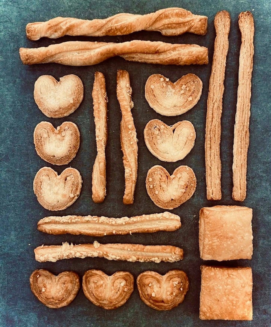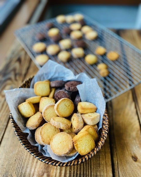 そんなソイル・金森が作りあげる肝心の商品は、北海道産のバターを100%使用した折込パイ生地のパルミエ(ハート型のパイ)を味違いで5~8種、塩味のパイが種前後、6~8種の練り込みパイ(クッキー)は、過去に修行した洋菓子店で鍛えた味作りで、どれも折り紙付きの美味しさです。パイ生地研究所という名前通り、様々な味や形を追求しています。中でも京都産非加熱の甘酒を使用したパイ生地は、使用する国産小麦粉の美味しさを引き立て、どこにもない飽きの来ない味を作り出しました。価格は5~6個入りで300円前後と、年金で生活される方々でも、お子様でも求めやすい価格にセーブしています。これはワンオペだから出来る価格でもあります。