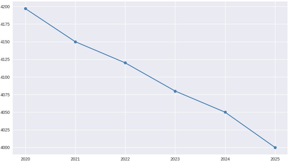 同地域は5年前から5%の減少となり、これと言った大きな開発も見当たらず、今後も歯止からかからない状況。