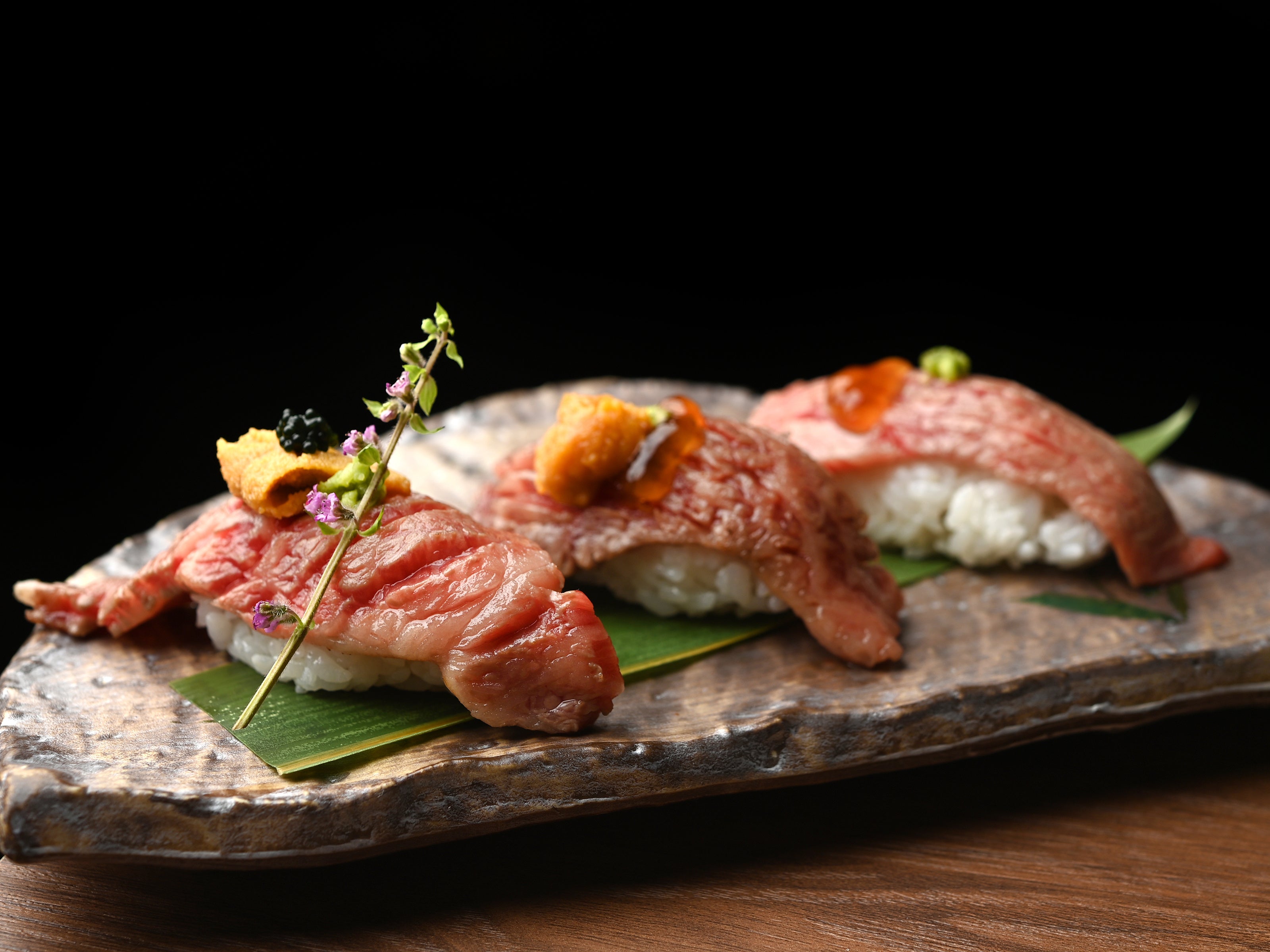 神戸牛食肉流通協会認定のほんま物の神戸牛のみを使用したステーキに生食許可の神戸牛肉のユッケやお刺身、お寿司の数々。