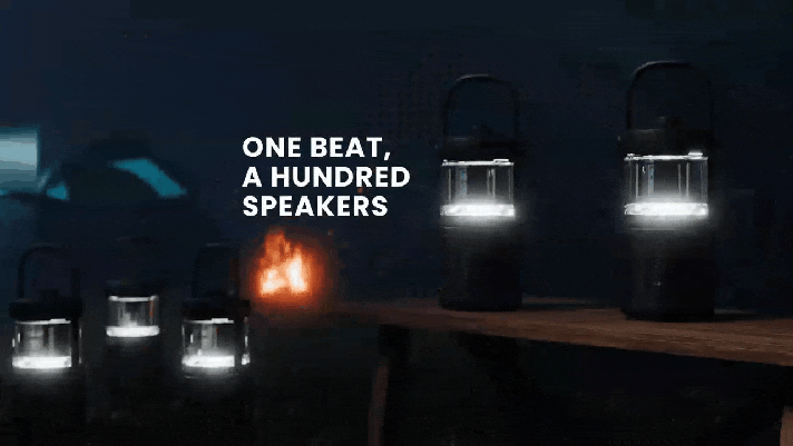 360°全方位に広がる立体音響、4色のLEDライティング、最大24時間の連続使用、防水IPX7対応といった高い実用性を備えながら、単なる“多機能スピーカー”に留まらない、空間体験そのものを価値として提供するライフスタイルギアとして開発されました。
