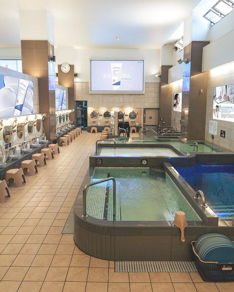 本施策ではサウナや入浴後の乾燥しやすい肌状態に着目し、AESTURAの代表シリーズ「アトバリア365」の世界観を温浴体験の中に落とし込みました。