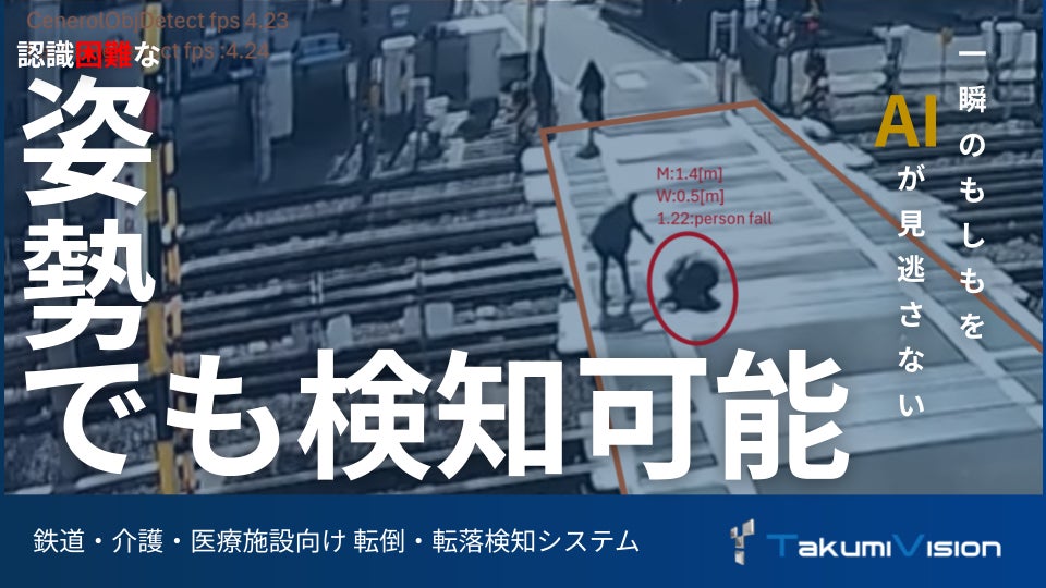 TakumiVision株式会社(本社:京都府京都市、代表取締役:片桐 一樹)は、踏切や駅ホーム、介護施設などにおいて、人の転倒や転落の可能性をAIが検知する画像認識技術を開発しました。
