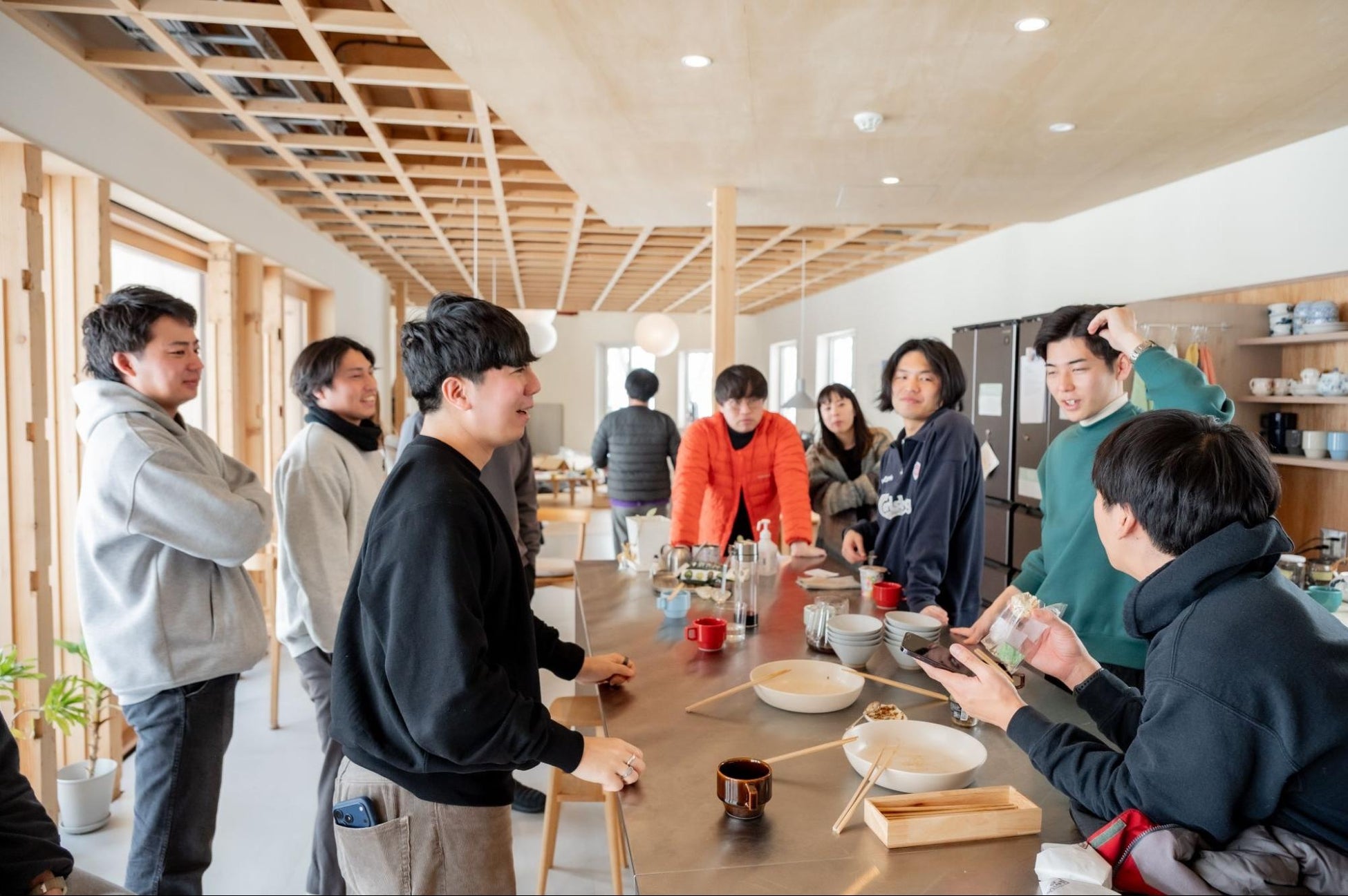 旭川市在住、木こりであり森林ガイドの清水省吾さんを講師に迎え、雪山へ。森の生態系から「支え合う構造」を学び、チームのあり方を考える機会としました。また、シビアな自然環境の中でのフィールドワークを、チーム全員で成し遂げたことは、チームの結束を高めていました。夕食づくりも、チームビルディングを意識。仕事とは異なる目的に向かって協働することで、メンバーの新たな一面を発見する時間になりました。